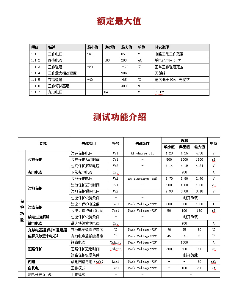 過充恢復(fù) 4.19V/3.65V 過放恢復(fù) 3.0V/3.0V