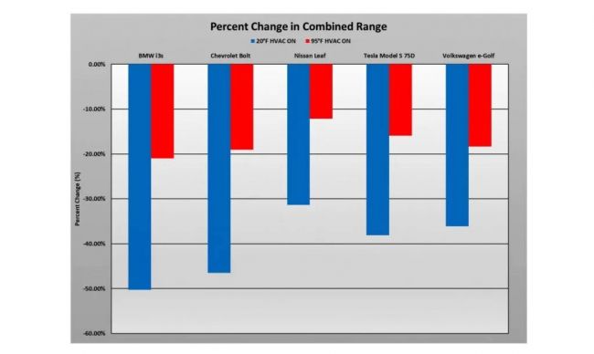 5輛電動(dòng)車(chē)型測(cè)試結(jié)果,圖片來(lái)源:美國(guó)汽車(chē)協(xié)會(huì)(AAA)