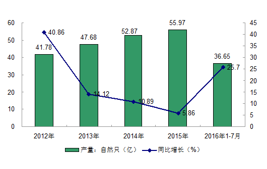 圖:2012-2016年1-7月中國(guó)鋰離子電池產(chǎn)量增長(zhǎng)情況
