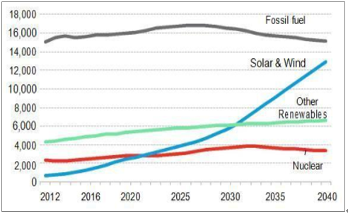 預(yù)測2040年全球發(fā)電結(jié)構(gòu)