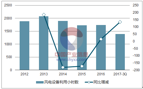 風(fēng)電設(shè)備利用小時數(shù)及同比增減