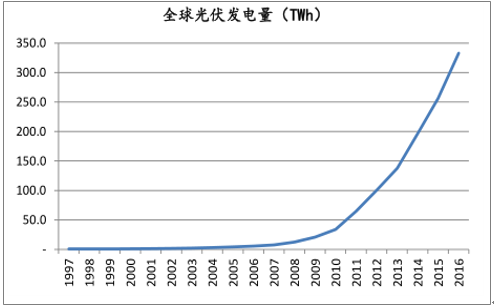 新能源發(fā)電的快速崛起,與世界各國日益重視環(huán)境保護(hù),倡導(dǎo)節(jié)能減排密切相關(guān)。風(fēng)電、光伏作為最為清潔的能源,受到全球青睞,各國紛紛出臺了鼓勵新能源發(fā)展的措施,促進(jìn)了風(fēng)電、光伏等新能源的發(fā)展。同時,由于技術(shù)的進(jìn)步,新能源發(fā)電的成本也快速下降,是其崛起的另一重要推動力。從1997年-2016年這二十年間,全球新能源發(fā)展迅猛。風(fēng)電裝機從7.64GW增長到468.99GW,光伏裝機從0.23GW增長到301.47GW,分別增長了60倍和1284倍。風(fēng)電,光伏發(fā)電量快速增長,分別從1997年的12TWh、0.8TWh增長到2016年的959.5TWh、331.1TWh,風(fēng)電發(fā)電量增長了79倍,光伏發(fā)電量增長了439倍,已經(jīng)成為電力供應(yīng)中不可忽視的電源。