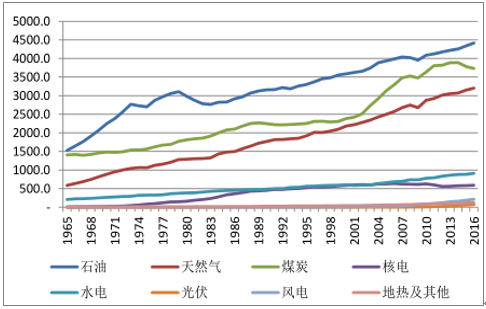 在新能源發(fā)電替代傳統(tǒng)能源的過程中,除了替代傳統(tǒng)的燃煤發(fā)電外,新能源汽車逐步替代燃油汽車,部分石油消費也可由電能來替代,新能源發(fā)電的增長空間非常廣闊。從歷史情況來看,石油、煤炭、天然氣等化石能源在過去一直是滿足世界能源需求增長的主要能源。近年來,雖然風(fēng)電和光伏增長迅猛,但由于基數(shù)很低,在全球整個能源消費結(jié)構(gòu)占比還非常小,風(fēng)電在總的能源消費中占比僅為1.64%,光伏占比僅為0.57%。